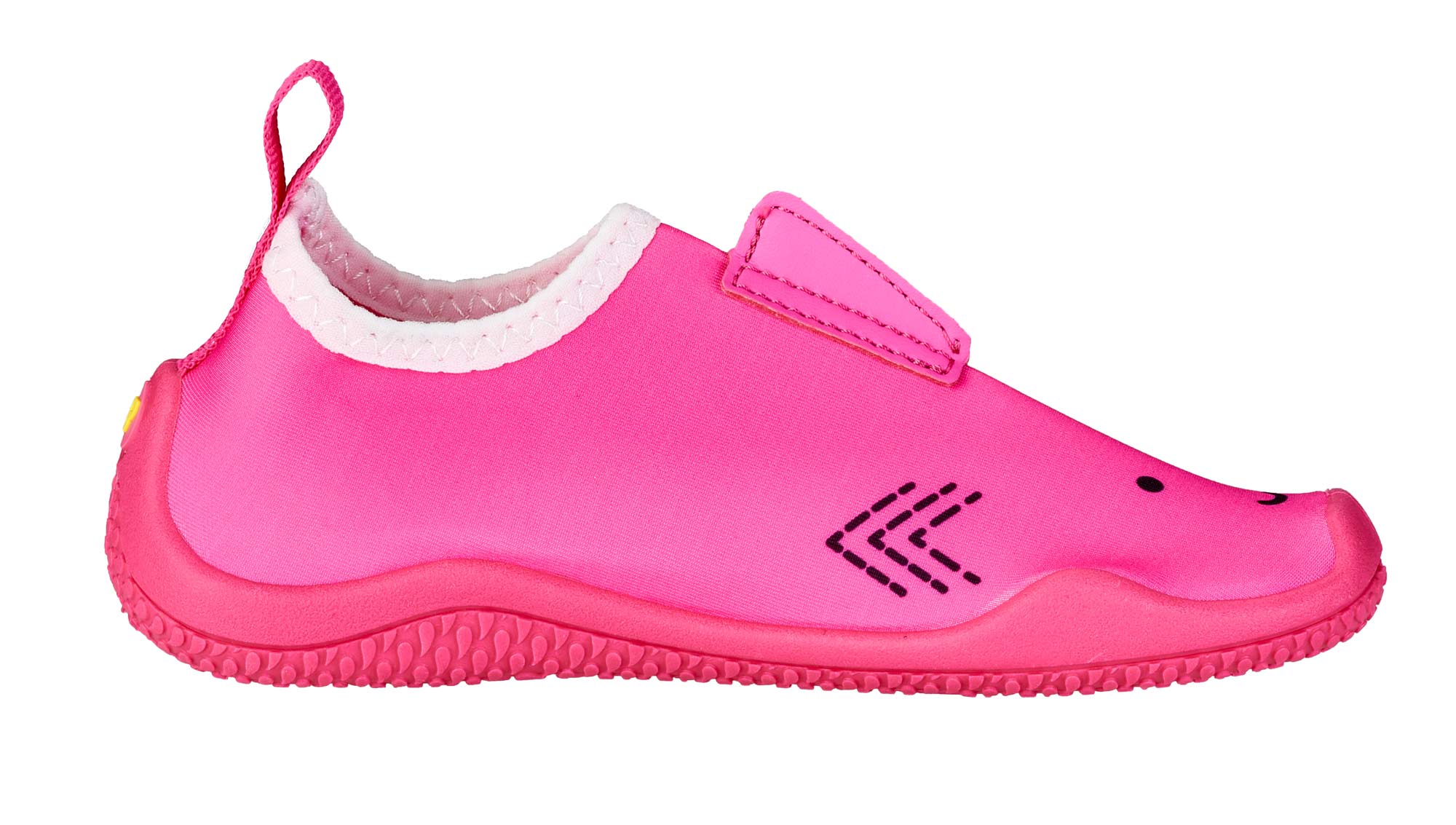 Dieses Modell wurde speziell für Kinder konzipiert und zeichnet sich durch die etwas robuster gestaltete Sohle aus. Sie ist an mehreren Stellen hochgezogen, um auch im Gelände ausreichend Schutz und Stabilität zu bieten, ohne den Fuß seiner natürlichen Stärken zu berauben. Die Anti-Rutsch Sohle bietet sicheren Halt und Schutz, auch im nassen Element, da sie mit Abfließöffnungen und einem fein perforierten Kunststoffnetz ausgestattet ist.